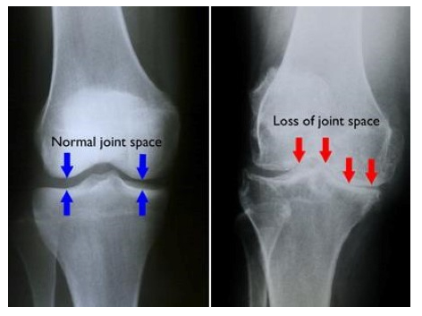 An important examination in osteoarthritis are the Xrays. These are best performed while the patient is standing so that the narrowing of the joint can be properly appreciated. An MRI scan might be indicated in cases where expected cartilage damage are present